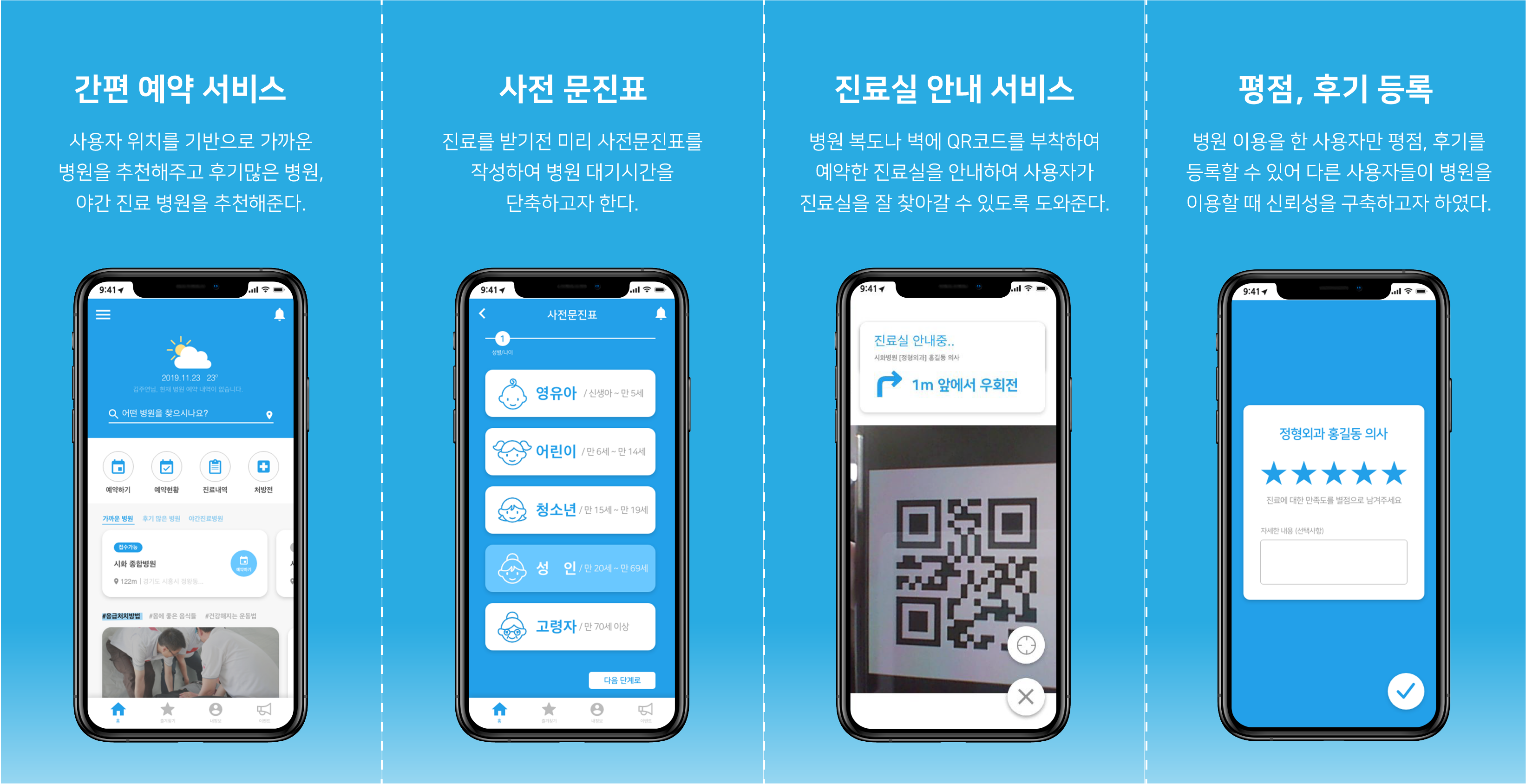 MY DOCTOR (마이닥터)는 사용자가 편리하고 쉽게 병원을 이용할 수 있도록 도와주는 스마트 병원 서비스 어플리케이션 입니다. 기능으로는 사전 문진표, 병원 간편 예약, 병원 내 길 안내 서비스, 담당의사 평점, 후기 등록, 간편 결제 등으로 사용자가 병원을 사용하는데 더욱 간편하고 사용자의 후기를 통해 신뢰성을 높여줄 수 있습니다.