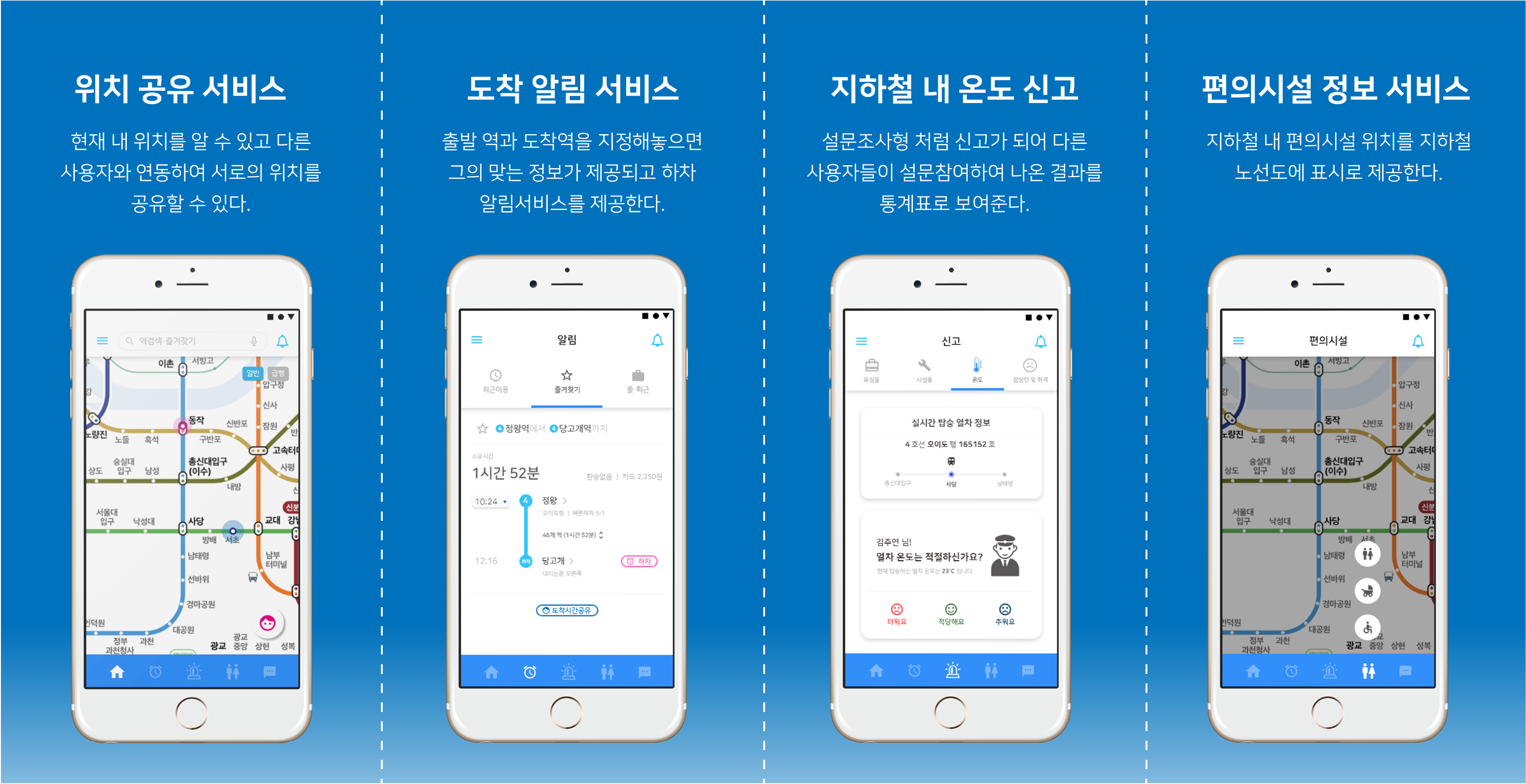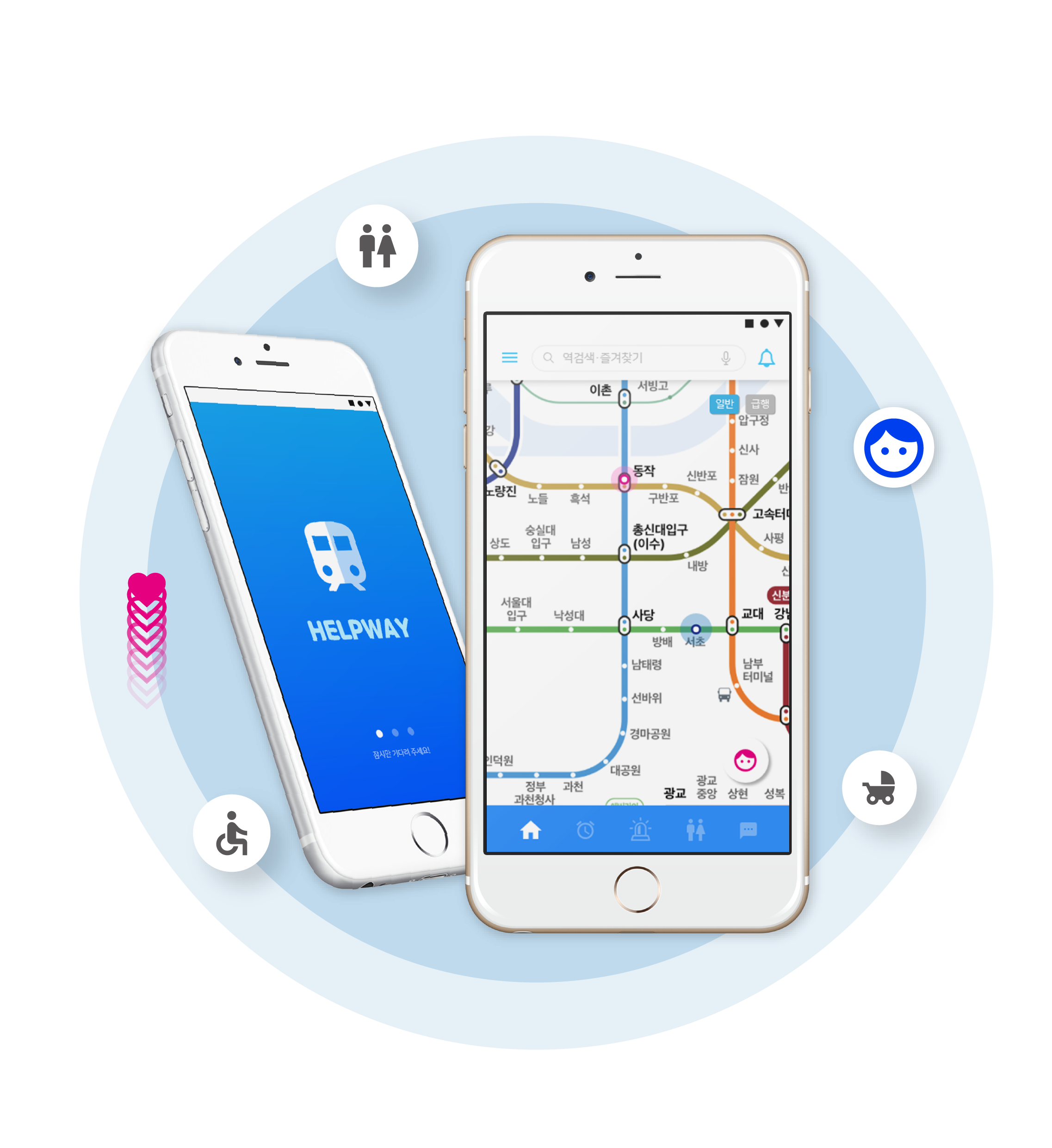 "헬프웨이”는 지하철 디스플레이와 연동되는 지하철 서비스 어플리케이션 입니다. 해당 어플은 시간단축을 목표로 하는 기존 지하철 내비게이션 어플리케이션에서 보다 발전하여, 지하철 내 디스플레이와 연동되어 어플 사용자에게 보다 많은 정보와 편의를 제공합니다.